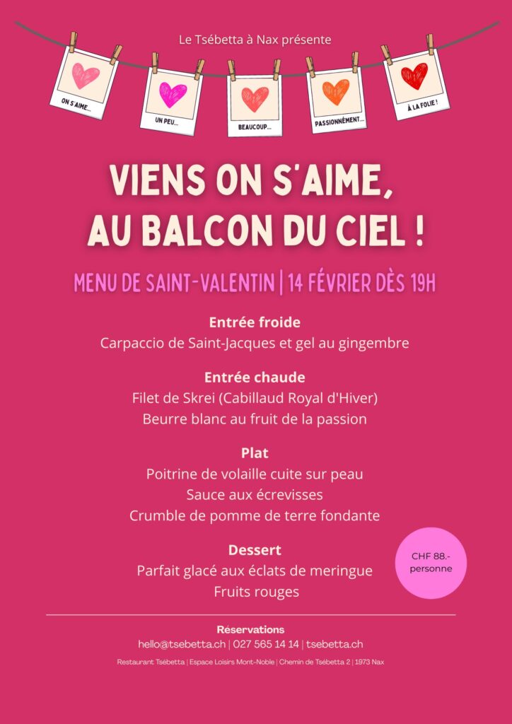 Bienvenue au Tsébetta, le restaurant de l’Espace Loisirs Mont-Noble. Un lieu de saveurs, d’inspiration et de bien-être au coeur d’une nature unique pour vos sorties entre amis ou d’entreprises à 20 minutes de Sion !