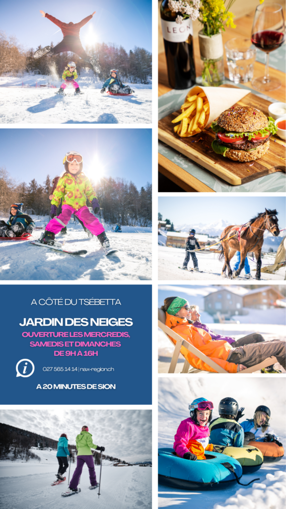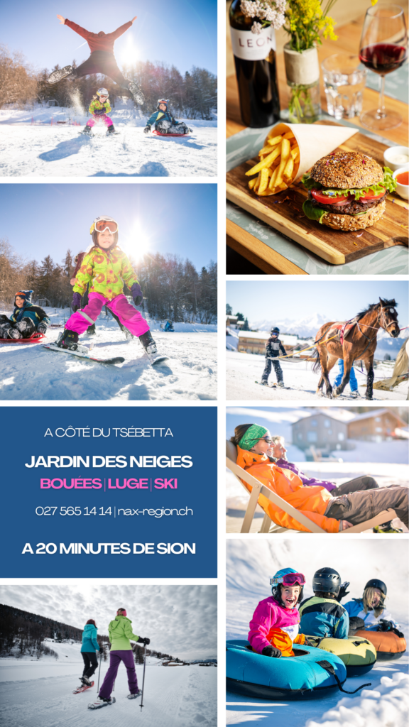 À proximité directe du restaurant, la Commune de Mont-Noble porte un soin tout particulier à offrir un espace de loisirs de qualité qui fait la joie des petits comme des grands, avec un jardin des neiges, un tapis roulant abrité et chauffé, une piste de ski, une piste de luge et de bouées, un parcours de ski de fond, du ski joëring et divers sentiers raquettes. Un grand parking est également à votre disposition pour faciliter votre venue.